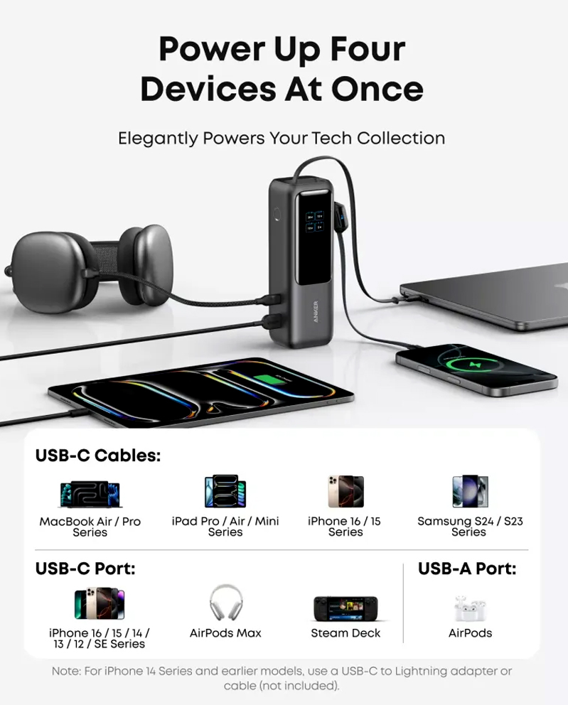 Anker Laptop Power Bank (25K, 165W, Built-In and Retractable Cables) Buy Anker Laptop Power Bank (25K, 165W, Built-In and Retractable Cables) in Bangladesh